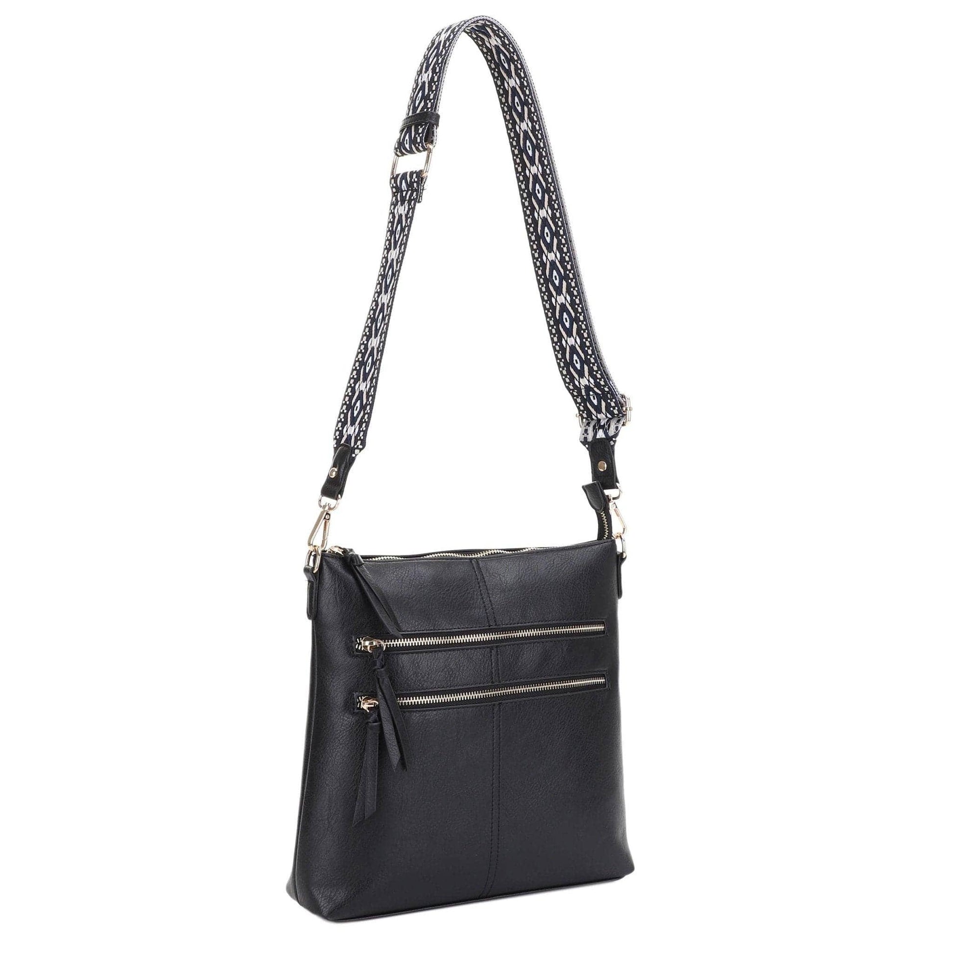 Yeni Double Front Zip Crossbody Bag With Guitar Strap | Black