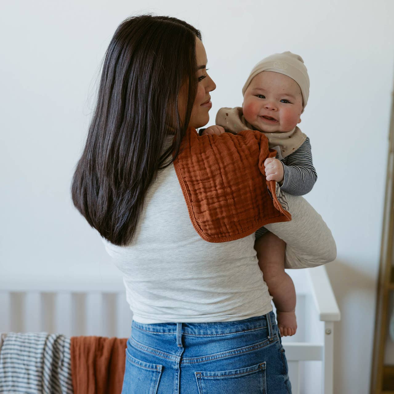 Babies make a lot of messes, and parents need products that keep up. Between spit-up, diaper changes, and mealtime messes, there are countless daily messes! Our Estes Burp Cloths save the day. Oversized, soft, and absorbent, they tackle messes. Dab away milk and spit-up, wipe post-dinner messes, and soak up spills. Toss in the wash afterward for hands-free cleanup! Features: - 4 oversized burp cloths - Playful colors - Super absorbent cotton (6 layers of muslin) Made with 100% Muslin Cotton, our burp cloths are soft and gentle on skin. At 11" x 20", they are practical for daily use. A 4-pack set ensures parents never run out. The Estes Burp Cloth Set blends with any nursery decor and is a perfect baby shower gift. Versatile and essential, parents can pack them in a diaper bag, keep them on the nursing chair, or have them handy at the dinner table. Offer your customers a practical solution for everyday messes. Add our Estes Burp Cloth Set to your lineup today!