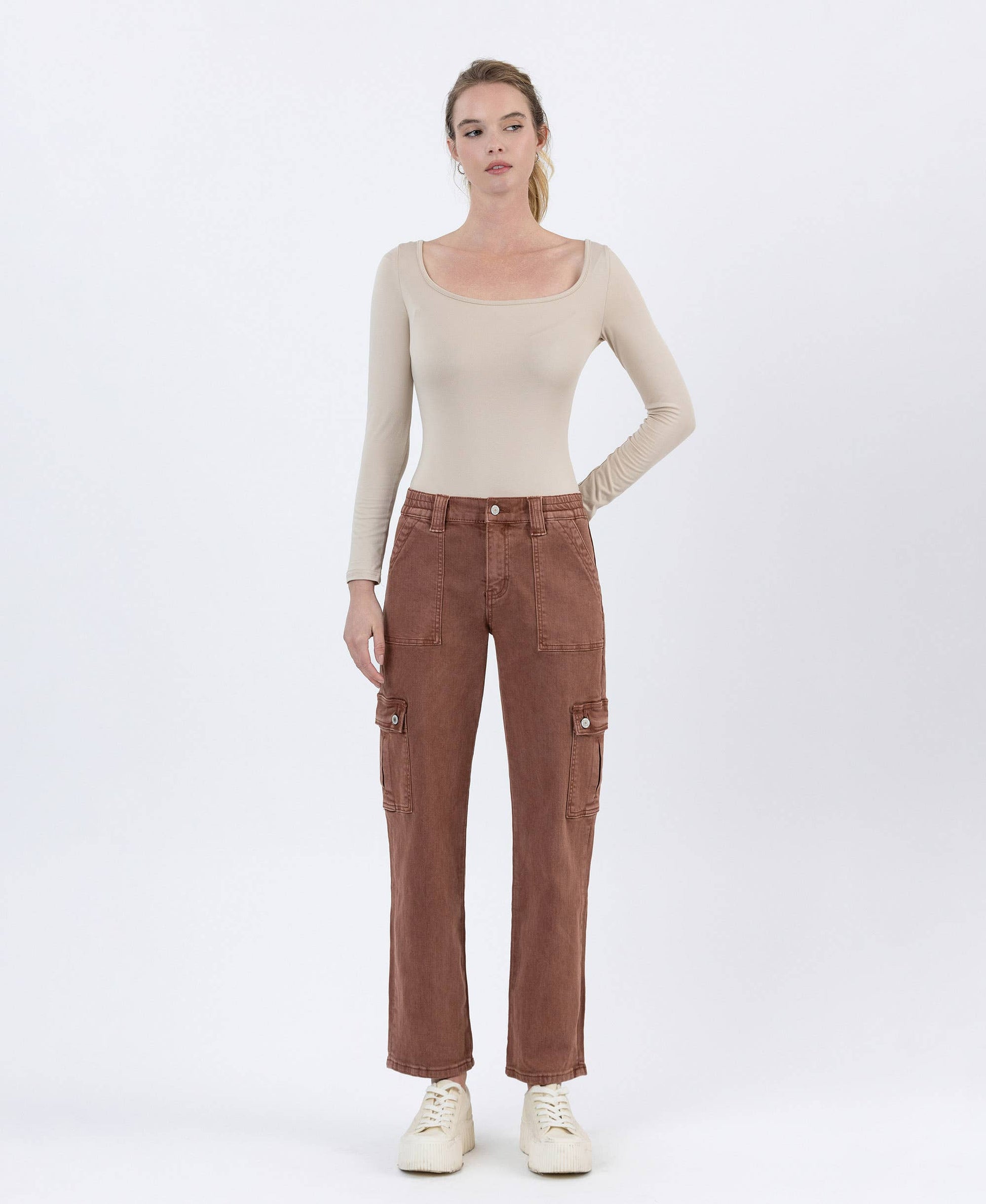 High Rise Patch Pocket Cargo Straight Jeans | Red Brick