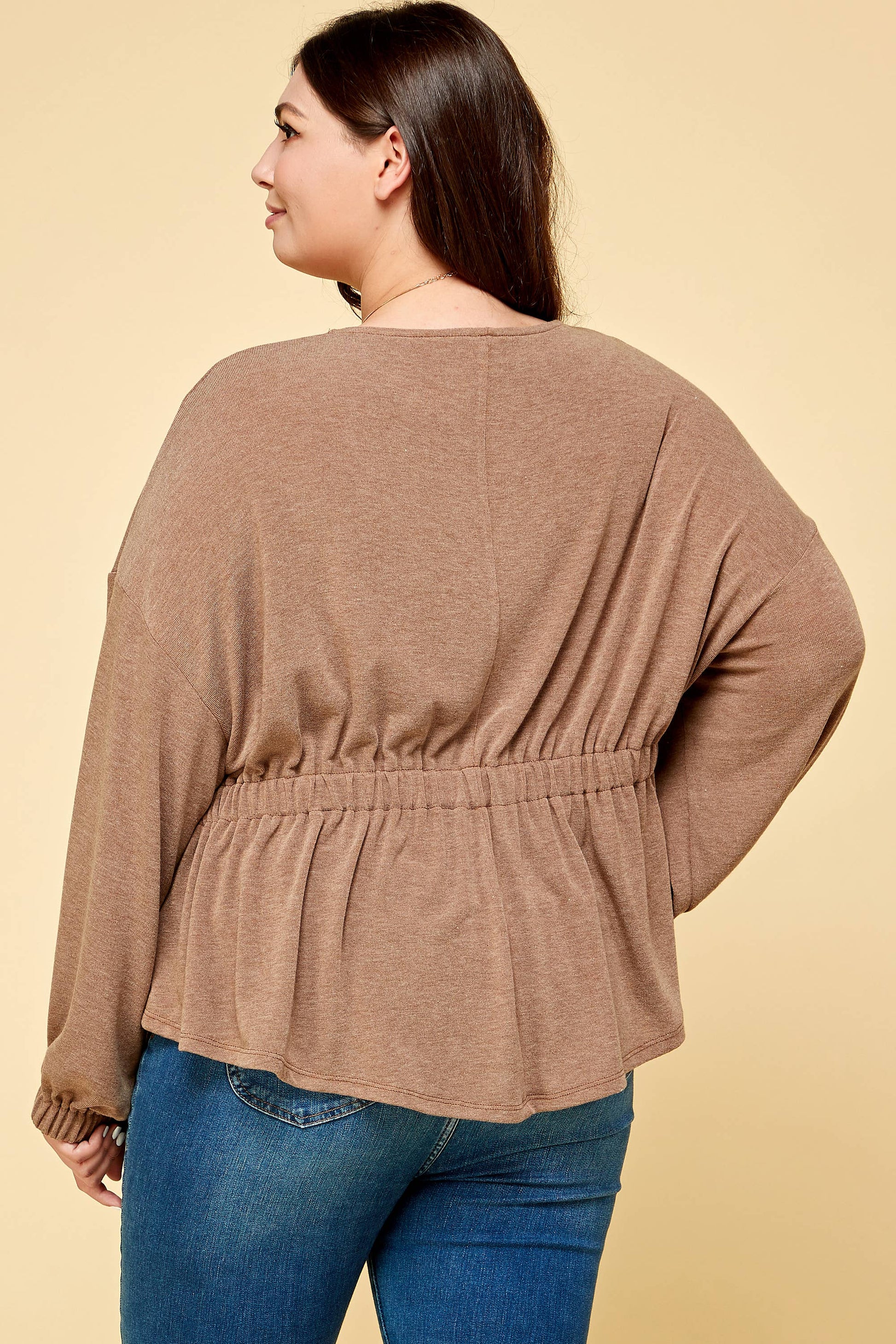 Lesley Plus Size Solid Rouched Back Top | Brown