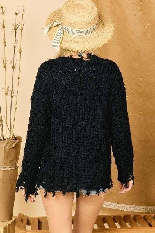 PLUS SIZE DISTRESSED BOAT-NECK KNIT SWEATER TOP