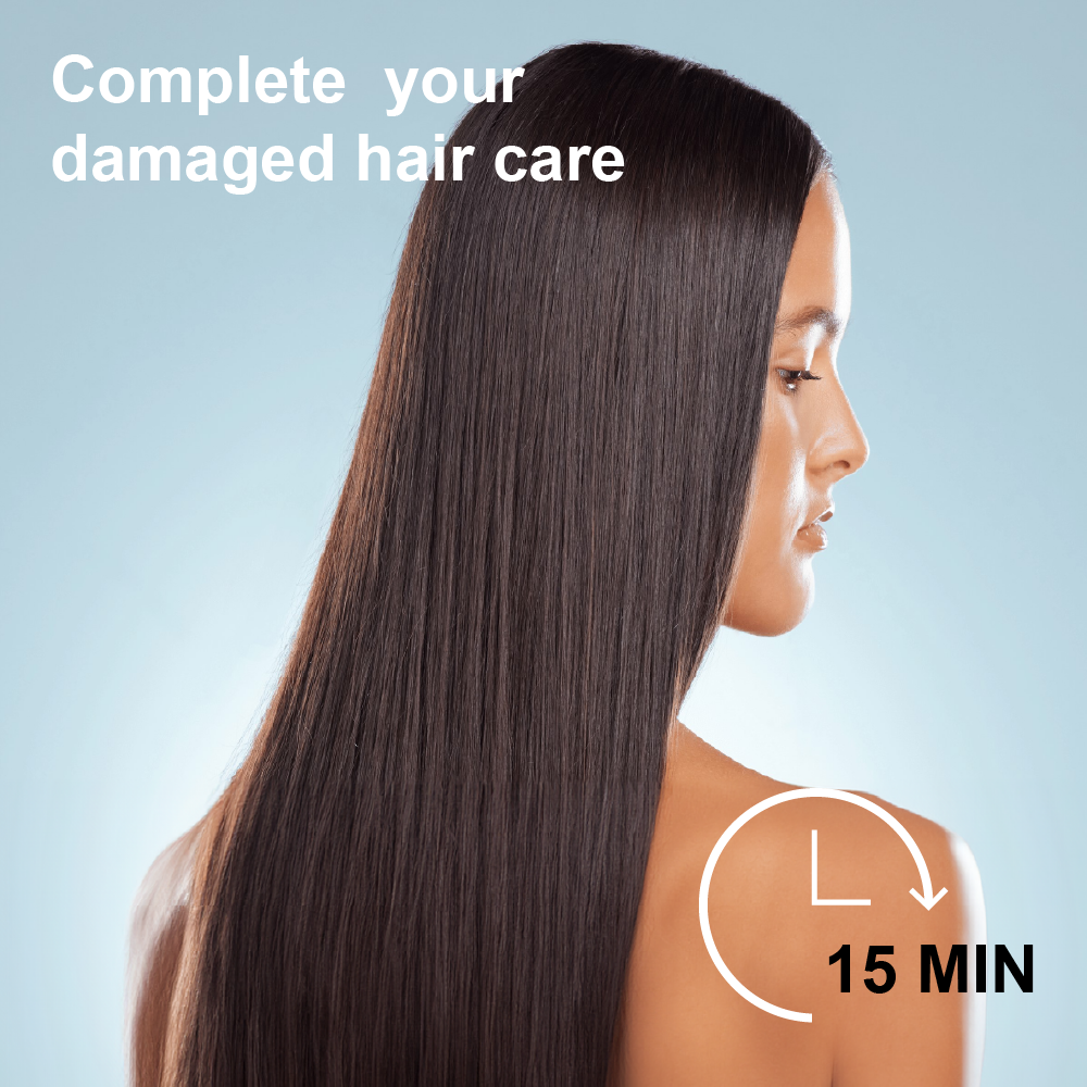 *15 MIN HAIR MASK(x1)--Deeply nourishes and repairs hair damage. Coconut oil, sesame seed extract, and silk amino acid turn damaged hair to achieve shiny and vibrant hair.