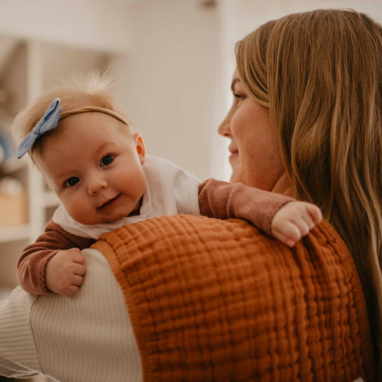 Our Rose Burp Cloths save the day. Oversized, soft, and absorbent, they tackle messes. Dab away milk and spit-up, wipe post-dinner messes, and soak up spills. Toss in the wash afterward for hands-free cleanup!