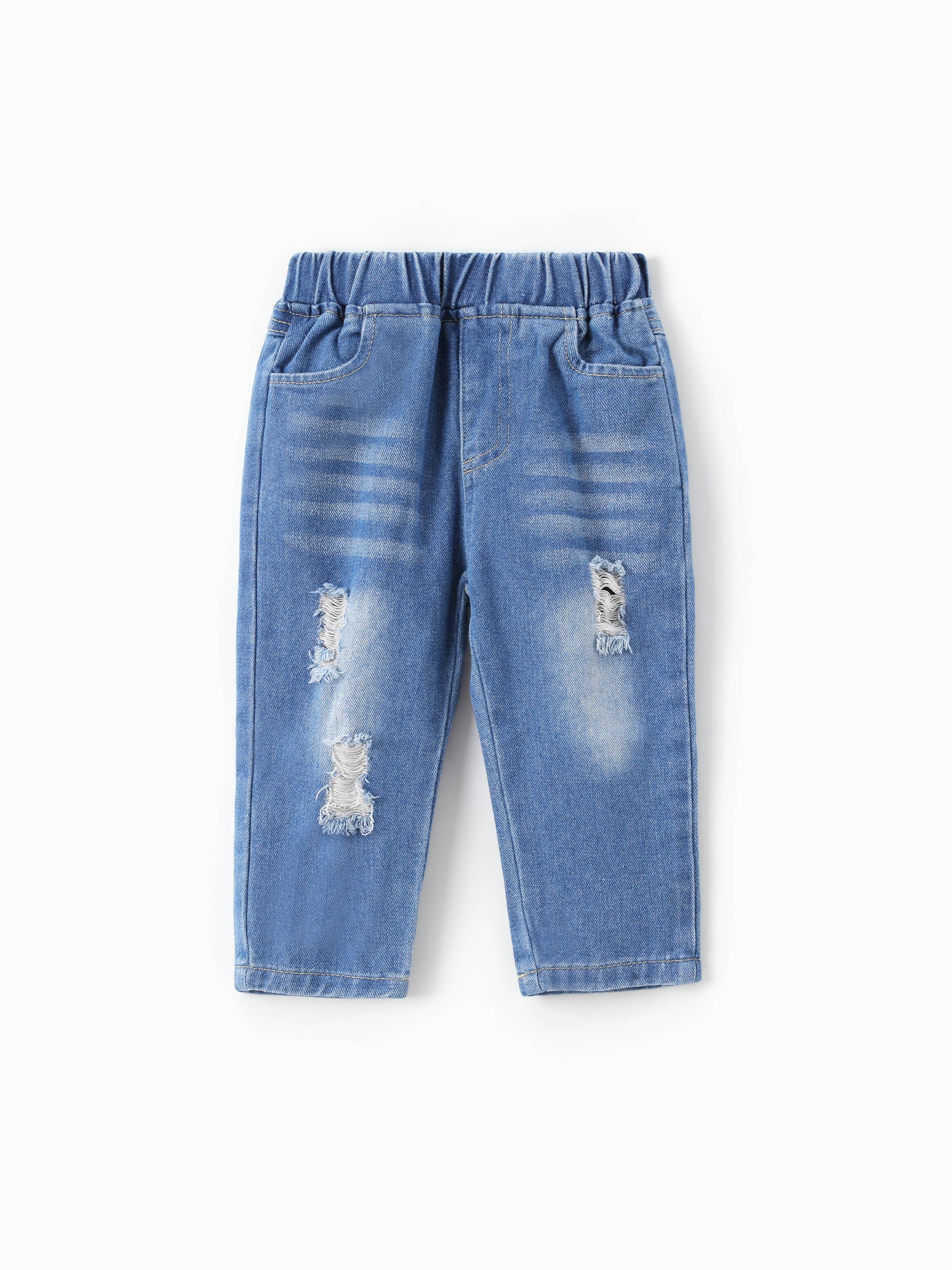 Product Introduction:Comfort meets style with PatPat's baby jeans, a basic must-have fashion statement for your little one's everyday wear.;Fabric:Made of 65% cotton and 35% polyester for moderate fabric characteristic.;Care Instruction:Machine washable with cold water, do not bleach, low-temperature tumble dry, low-temperature iron, do not dry clean.;Key Features:*Product features: Basic versatile design with distressed detailing. *Fabric characteristics: Moderate. *Piece of product: One pair of jeans. *Style: Basic versatile design with distressed detailing. *Fit: Moderate. *Length: Standard.