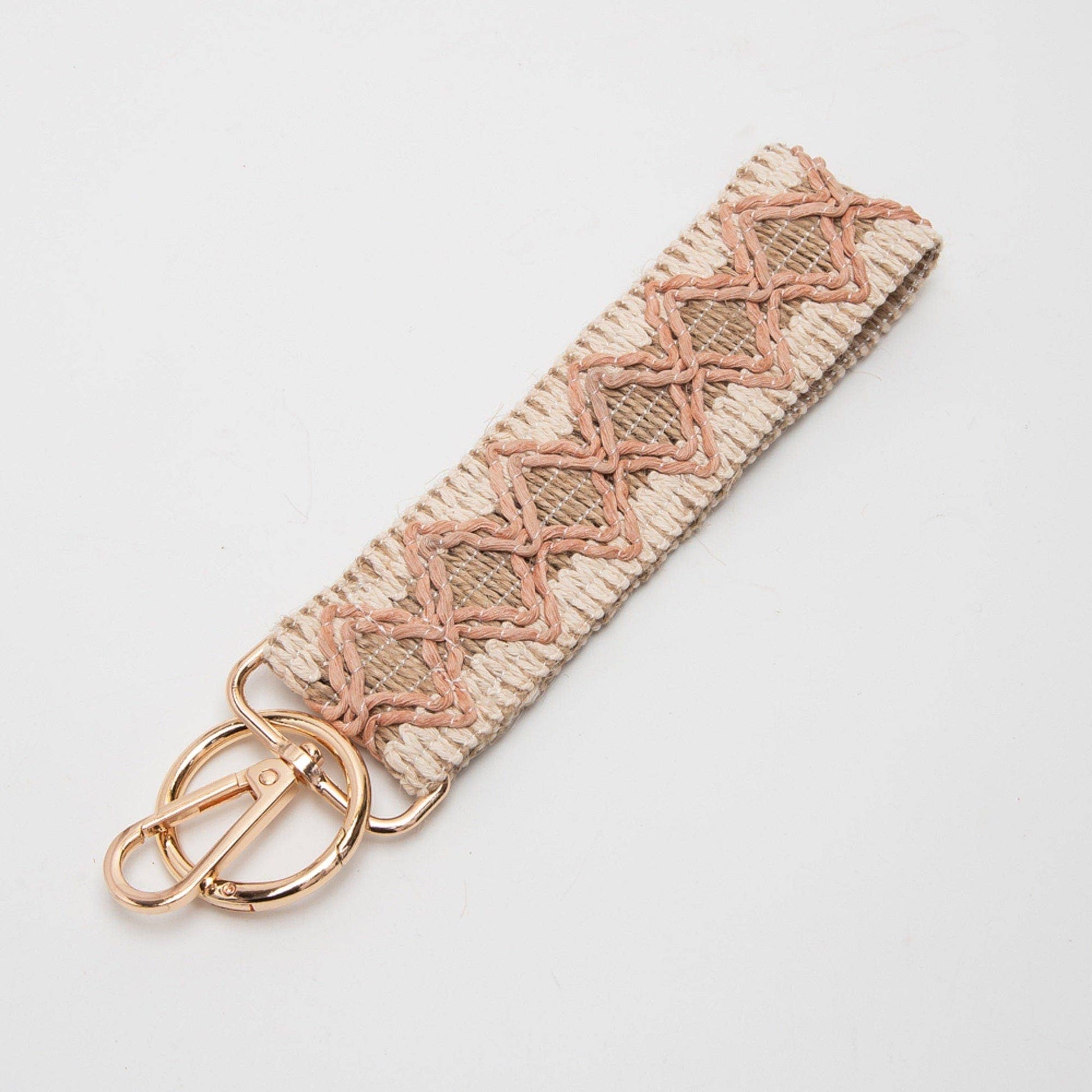 Wave Pattern Straw Wristband/Key Chain | Beige White