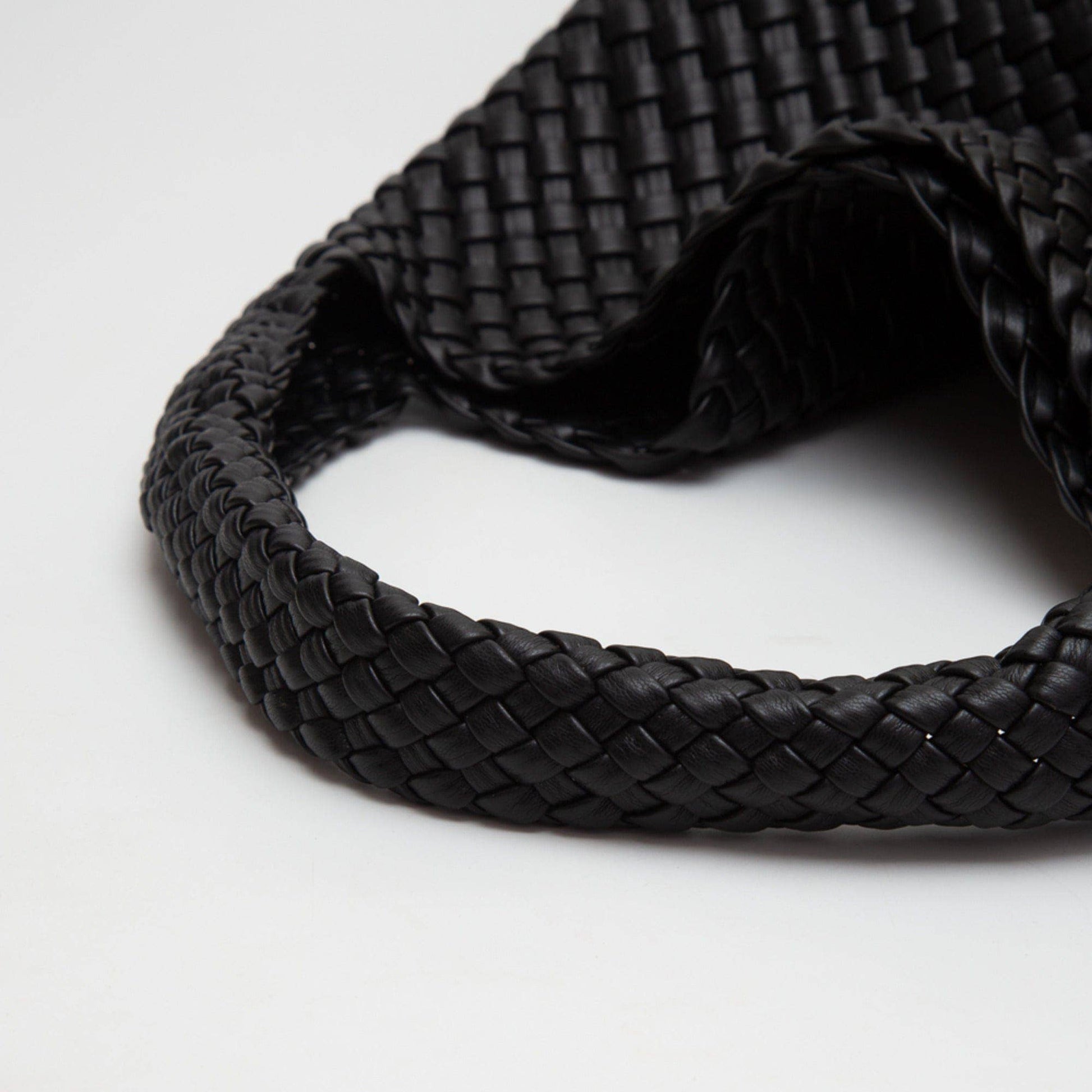 Carry all your essentials with ease (and style) with the Tiara Woven Hobo Tote Bag. The included pouch adds extra organization and versatility. * Magnetic closure * Includes pouch with removable wristlet strap and inside slip and zip pocket * Gold hardware * 14" x 5" x 12"